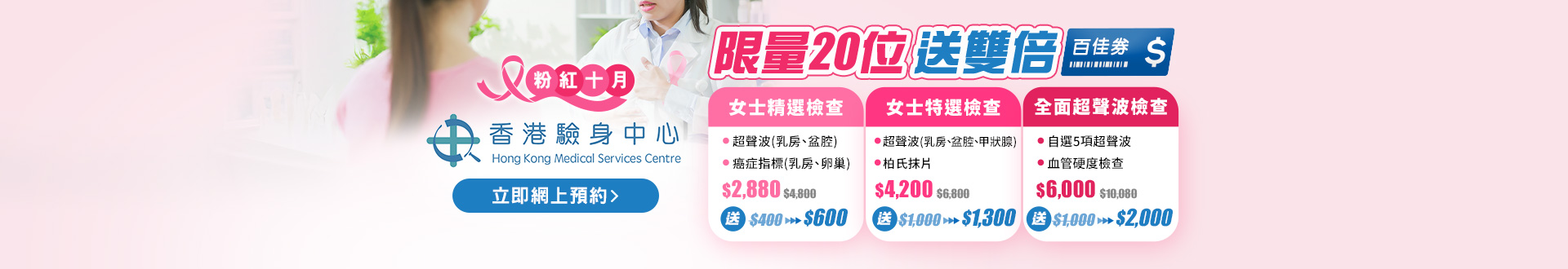 - 所有健康检查/服务并非作为医务诊断或治疗用途。当阁下身体健康出现任何疾病征兆时,应立即咨询有认可资格的医生,作出诊断及治疗。