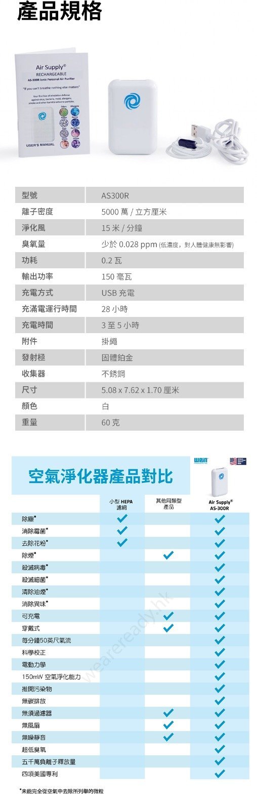 Air Supply® 個人便攜負離子空氣淨化器 AS-300R [原廠行貨]