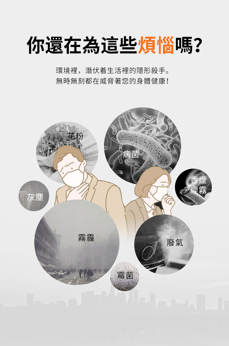 • 有效阻隔:PM2.5,灰塵,花粉,煙霧,病毒及過敏原。
