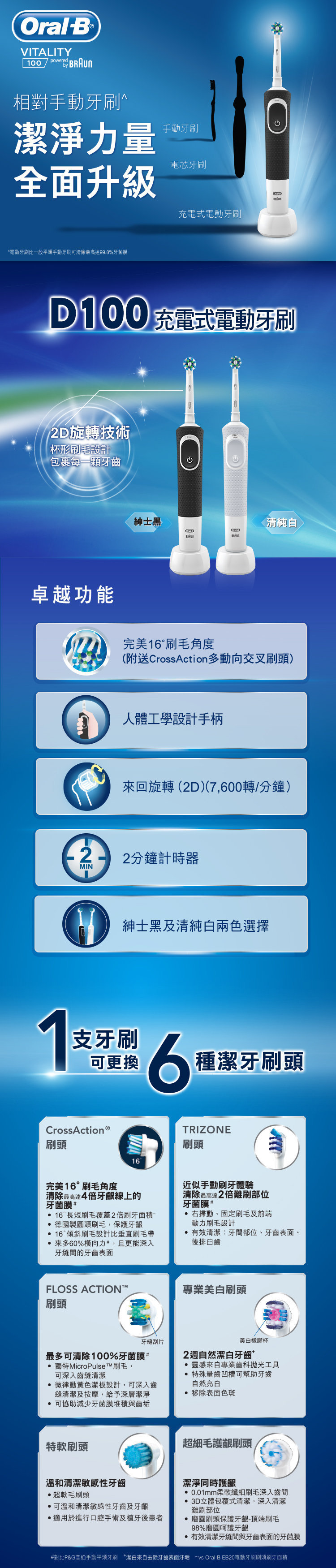 - 德國OralB D100 2D電動牙刷全面提升潔淨力量!